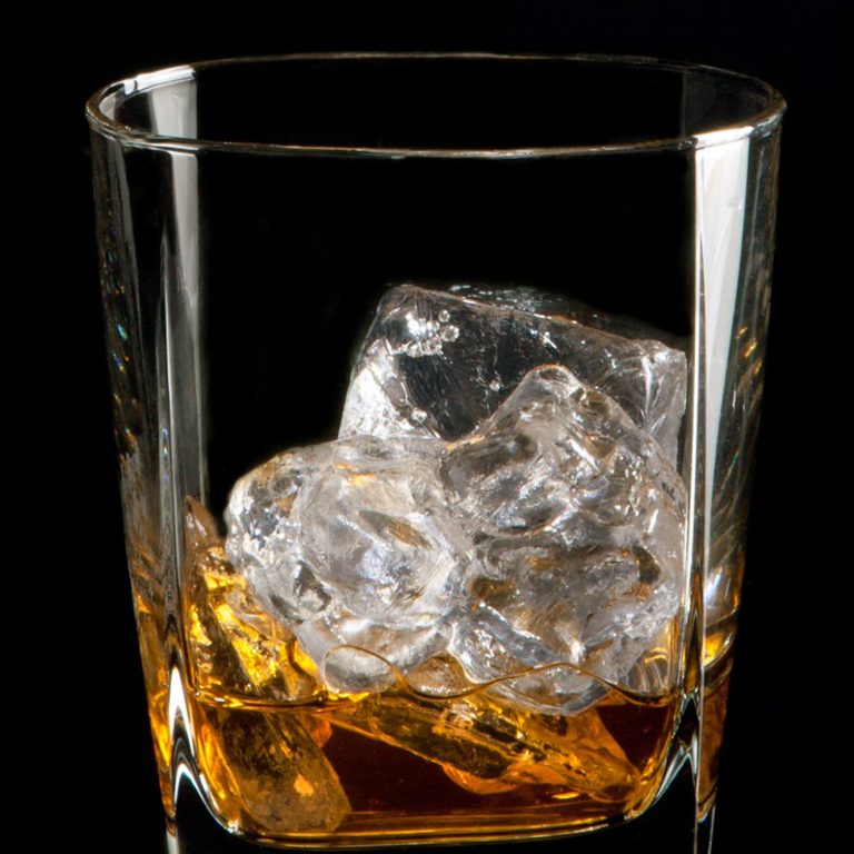 - Ein Whiskyglas mit frischen Eiswürfeln füllen.